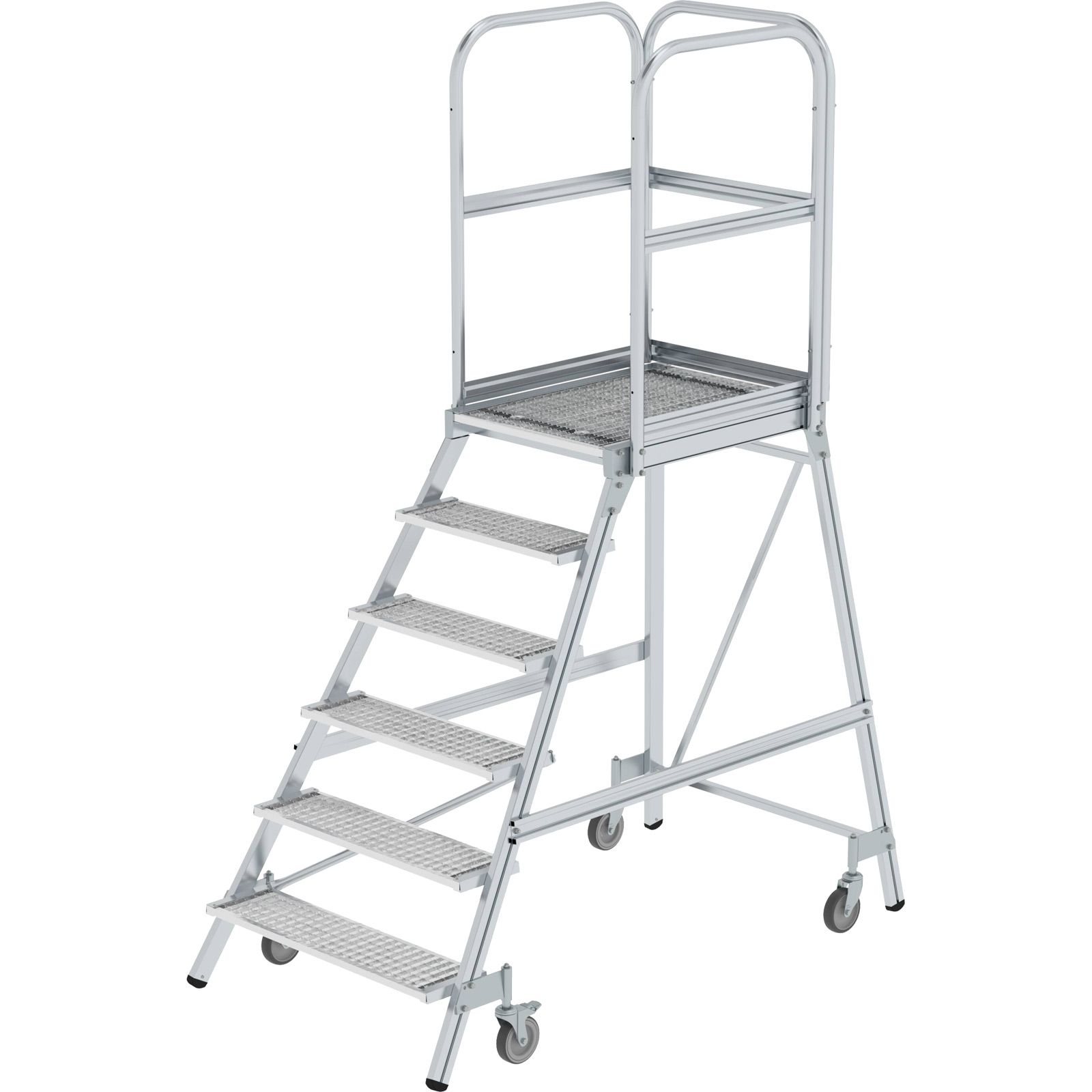 "Günzburger Steigtechnik Podesttreppe einseitig begehbar mit Federrolle Stahl-Gitterrost 6 Stufen - 051106"