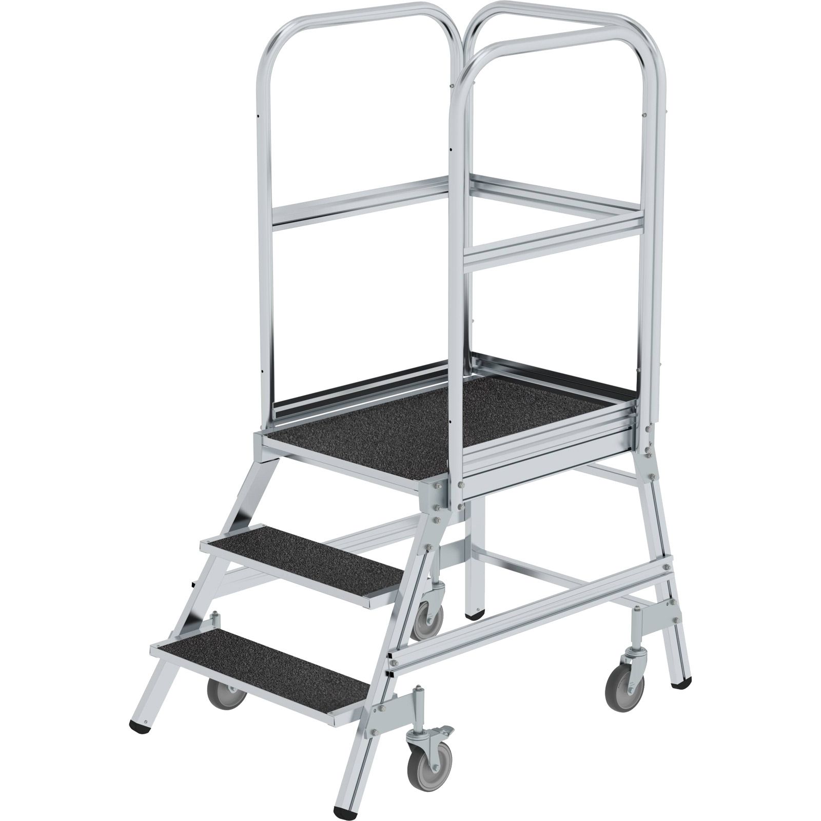 1x Günzburger Steigtechnik Podesttreppe einseitig begehbar mit Federrollen Korundbeschichtung R13 3 Stufen