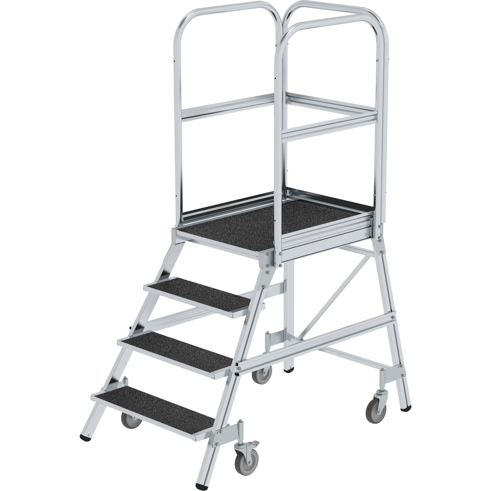 "Günzburger Steigtechnik Podesttreppe einseitig begehbar mit Federrollen Korundbeschichtung R13 4 Stufen - 054104"