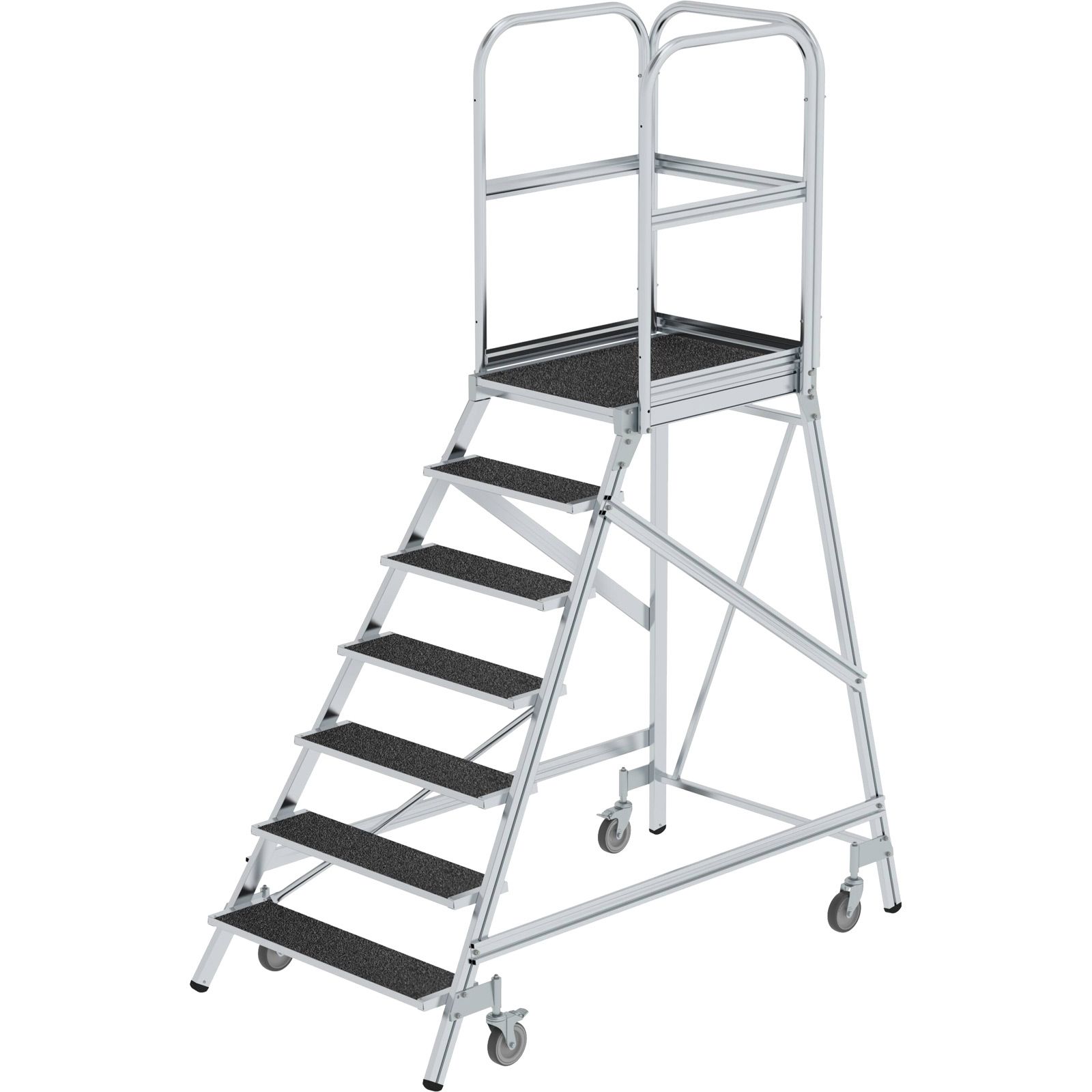 Günzburger Steigtechnik Podesttreppe einseitig begehbar mit Federrollen Korundbeschichtung R13 7 Stufen - 054107