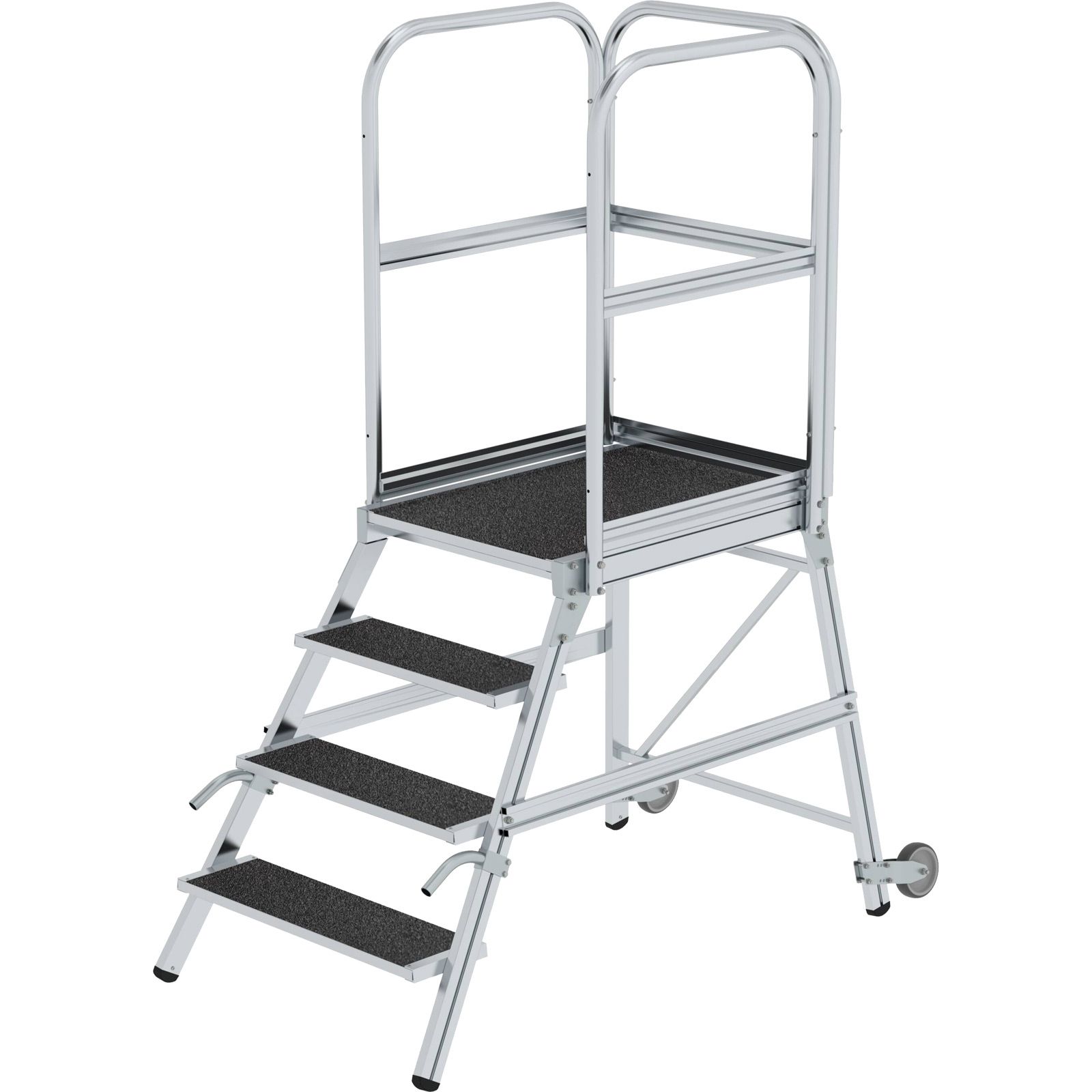 "Günzburger Steigtechnik Podesttreppe einseitig begehbar mit Rollen & Griffen Korrundbeschichtung R13 4 Stufen - 055104"