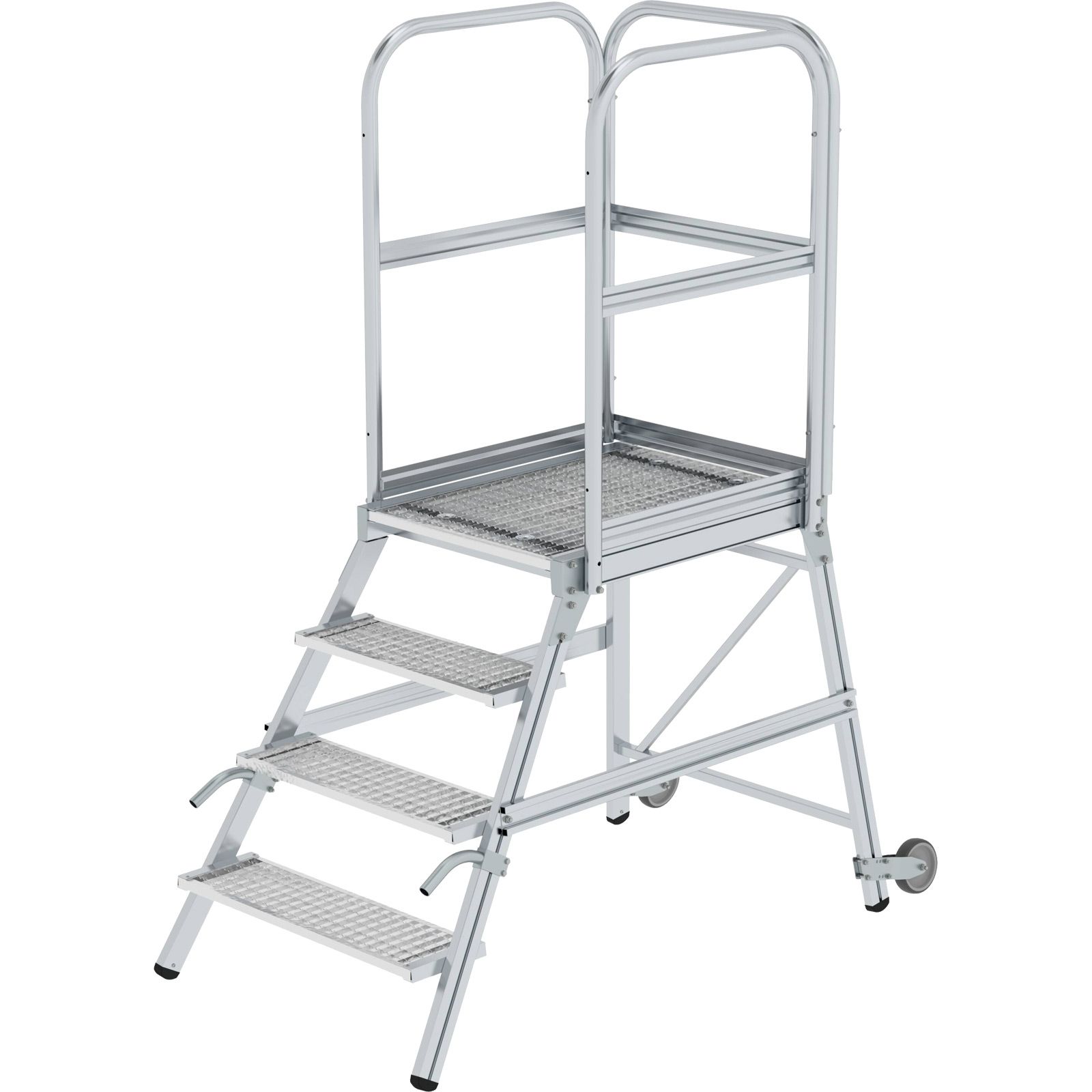 "Günzburger Steigtechnik Podesttreppe einseitig begehbar mit Rollen und Griffen Stahl-Gitterrost 4 Stufen - 058104"
