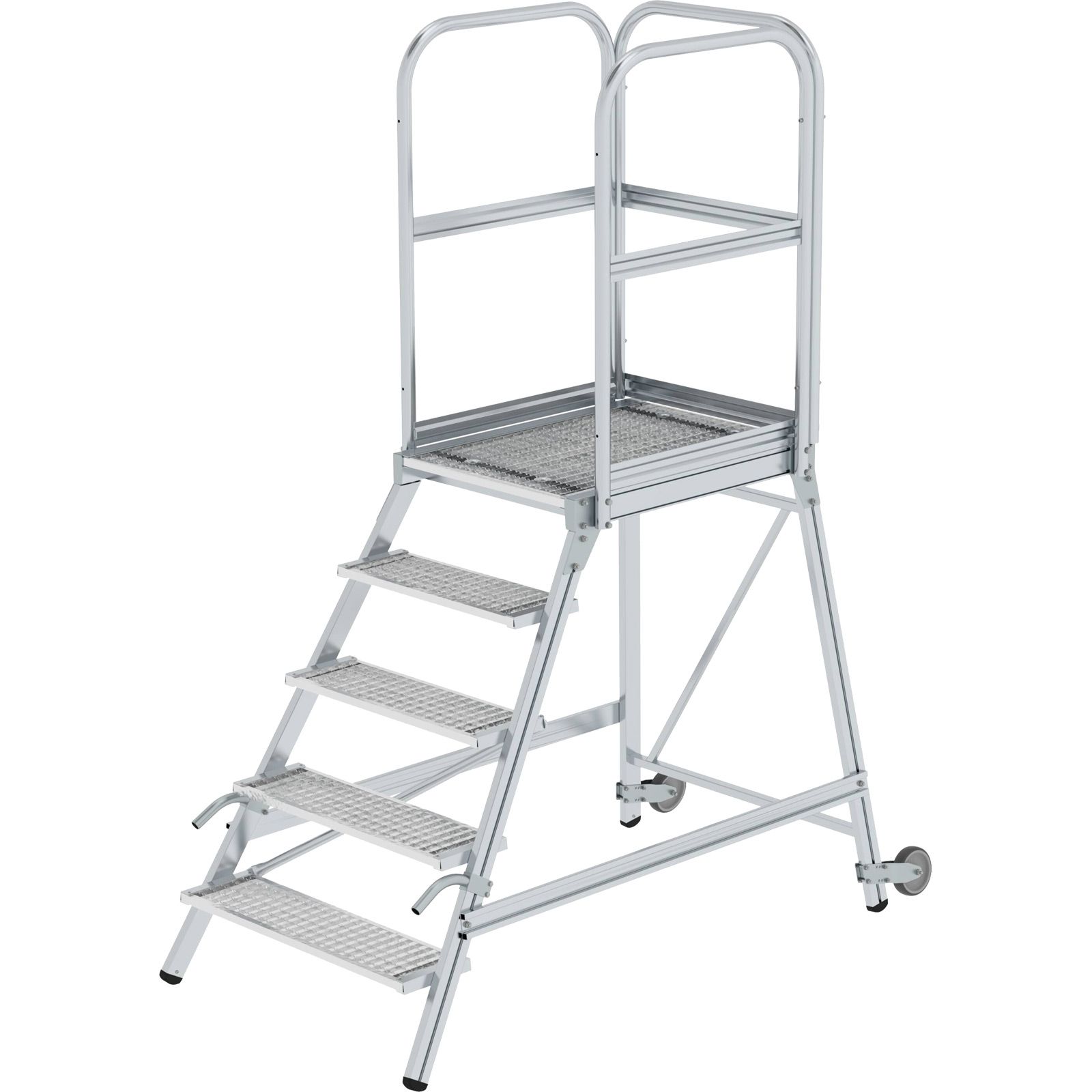 1x Günzburger Steigtechnik Podesttreppe einseitig begehbar mit Rollen und Griffen Stahl-Gitterrost 5 Stufen