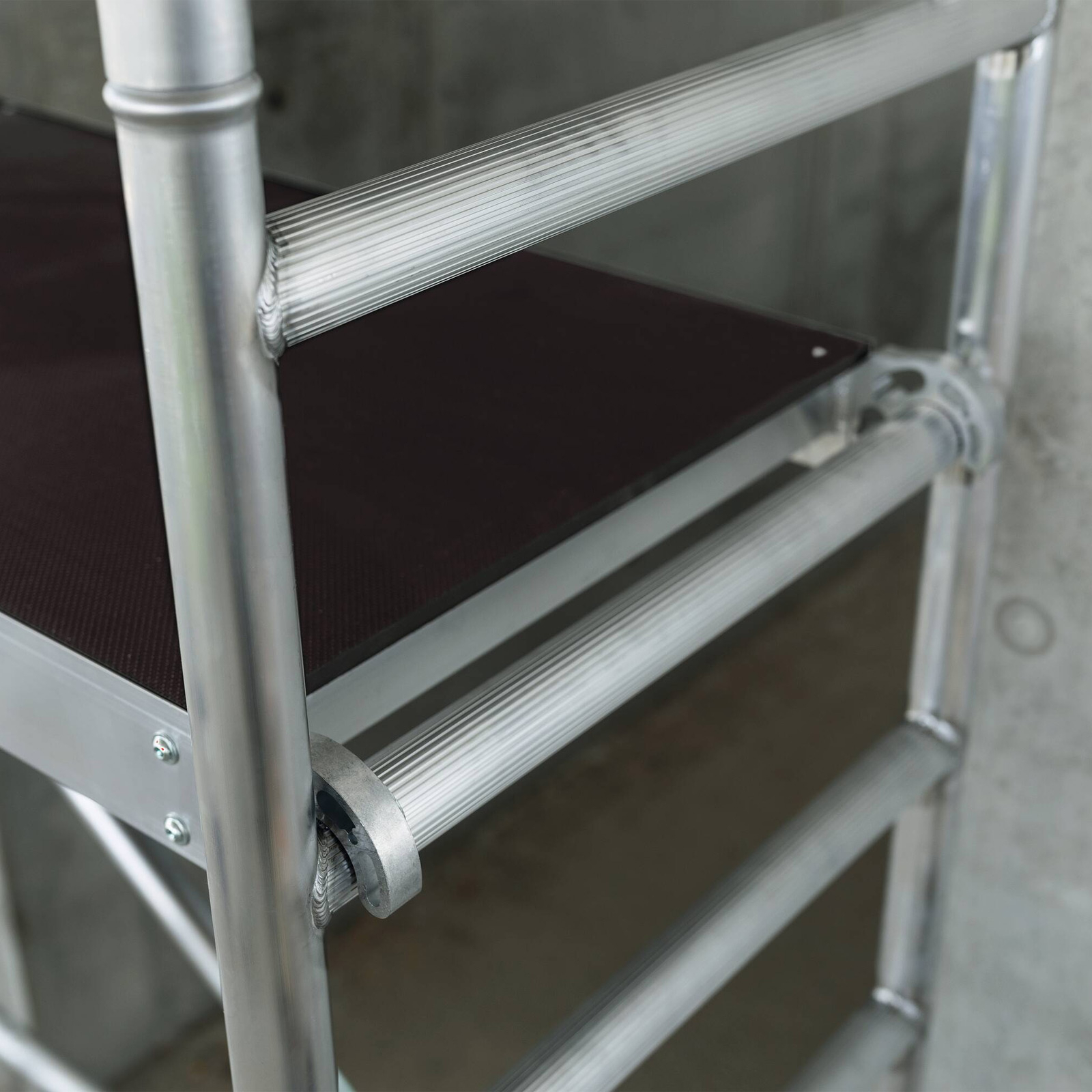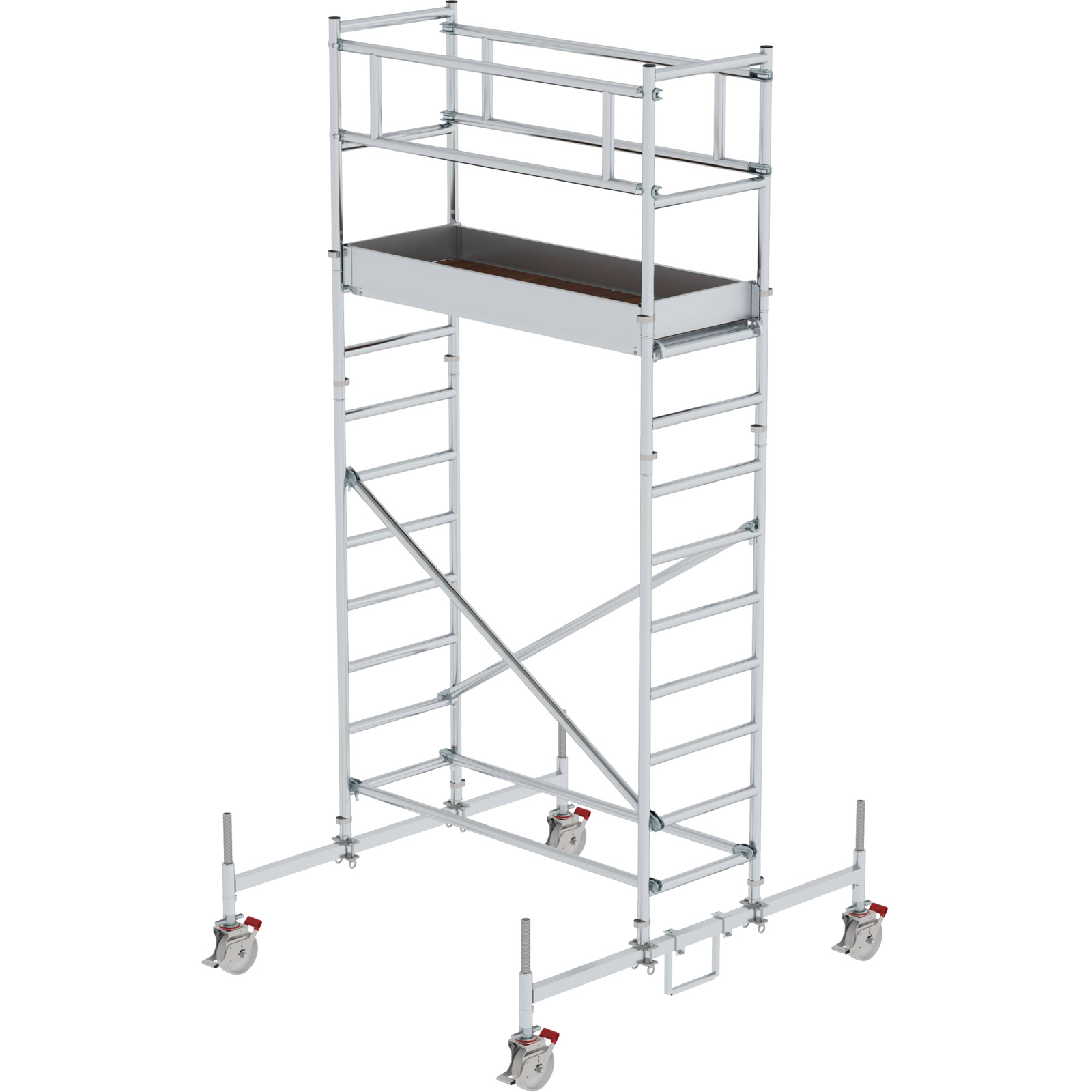 - Rollgerüst aus stabilem Aluminium-Rundrohr mit geschweißten Rahmenteilen