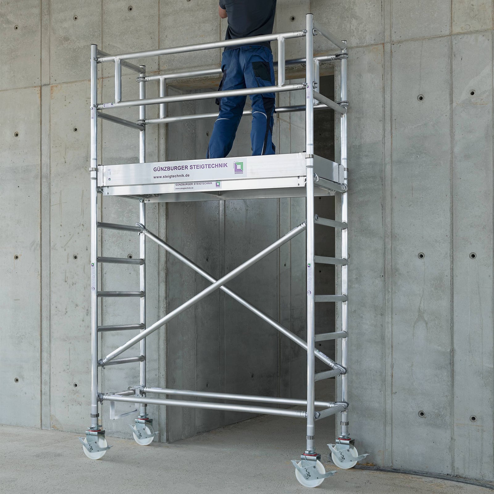 "Günzburger Steigtechnik Rollgerüst 0,75 x 2,45 m mit Fahrbalken Plattformhöhe 9,45 m - 155945"