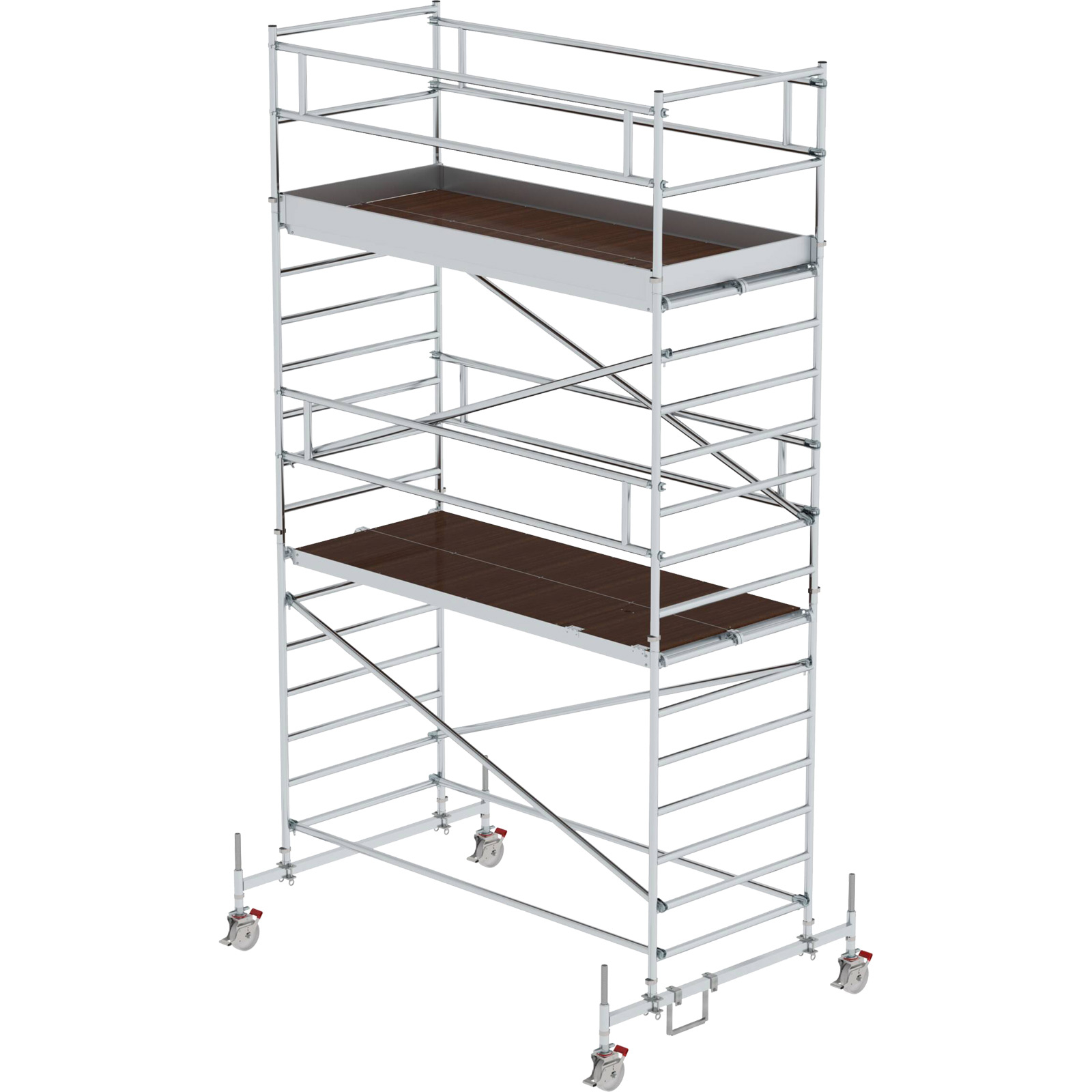 - Rollgerüst aus stabilem Aluminium-Rundrohr mit geschweißten Rahmenteilen