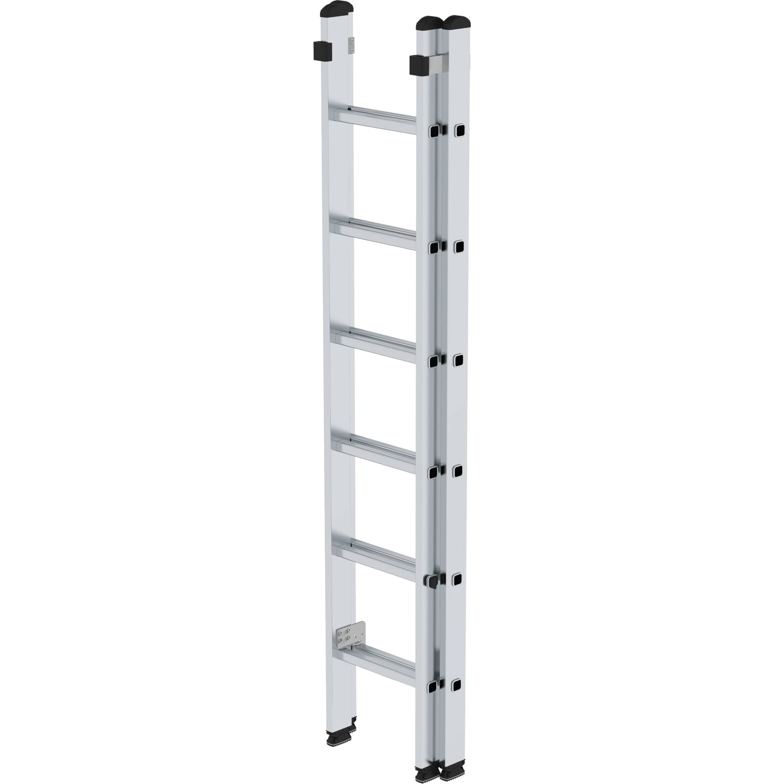 - Hinweis: Nach Norm ist das aufgesetzte Schiebeleiterteil bei Längen über 3 m nicht von der Leiter trennbar