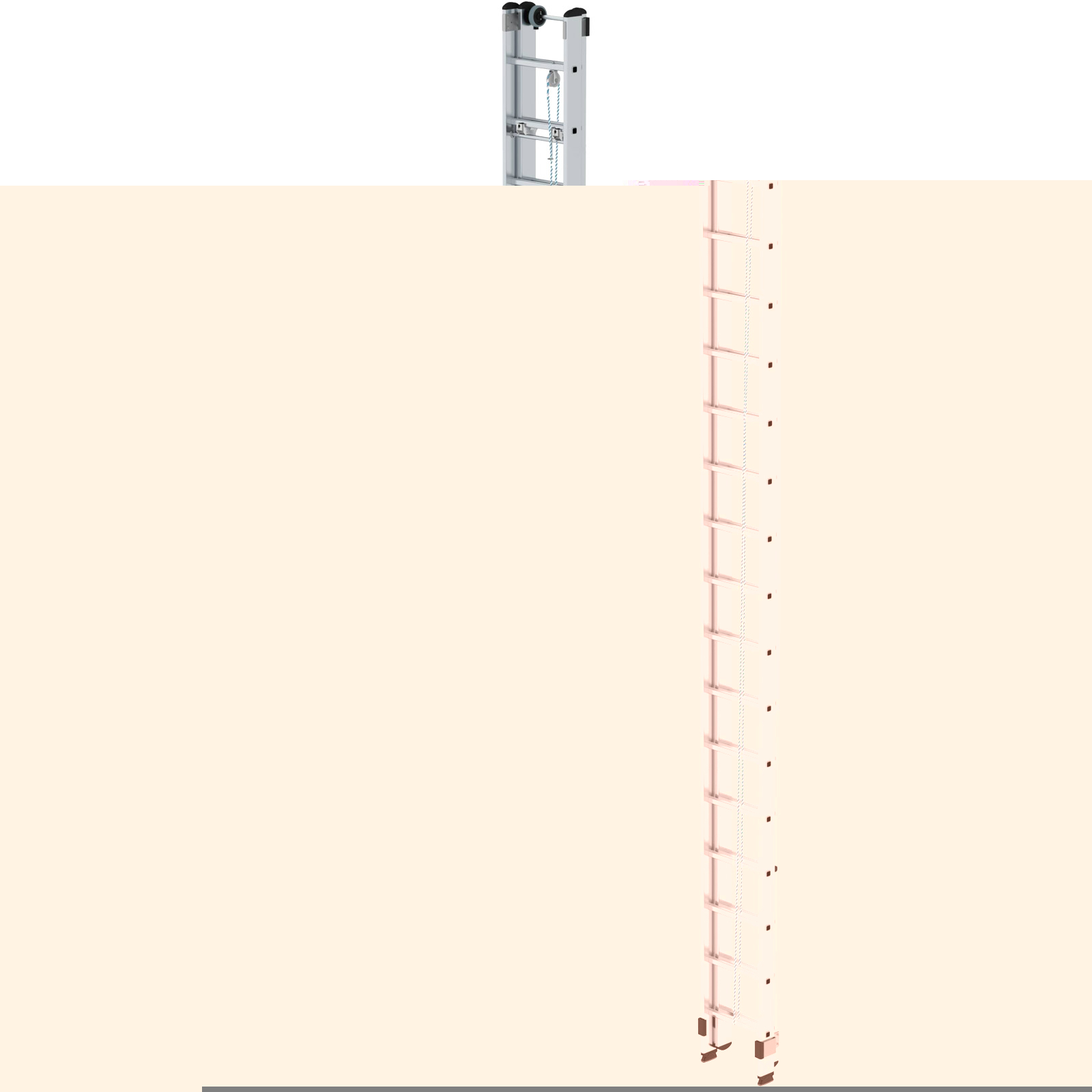 - Bequeme Höhenverstellung von Sprosse zu Sprosse dank Seilzug mit Kunststoffseil und automatisch wirkenden Einfallhaken