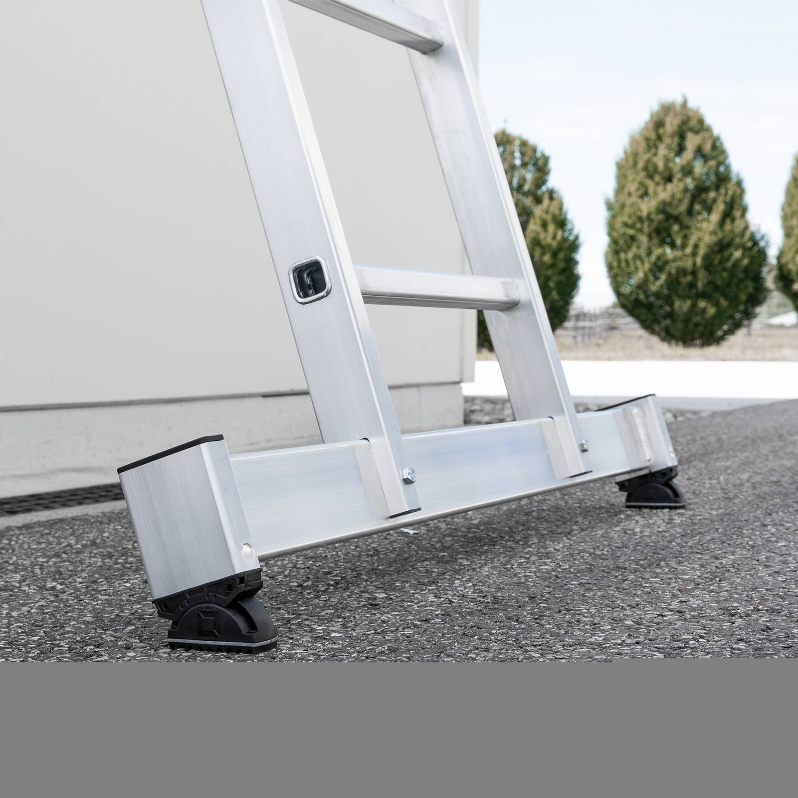 - nivello-Traverse in optimaler Breite zum gewählten Produkt für einen extra sicheren Stand und Aufstieg dank nivello-Leiterschuhe mit 2-Achsen-Neigungstechnik, Anstellwinkel-Kontrolle und wechselbaren Fußplatten. Die Traverse liegt lose bei und wird zweifach am unteren Holmende verschraubt