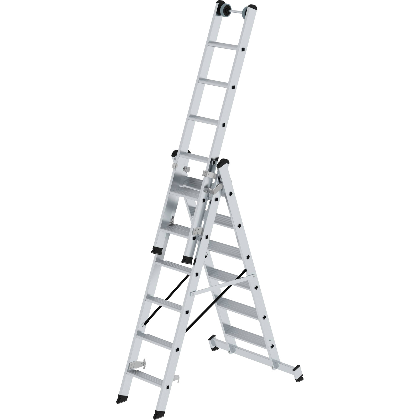 - Einsetzbar als Steh-, Anlege- und Schiebeleiter