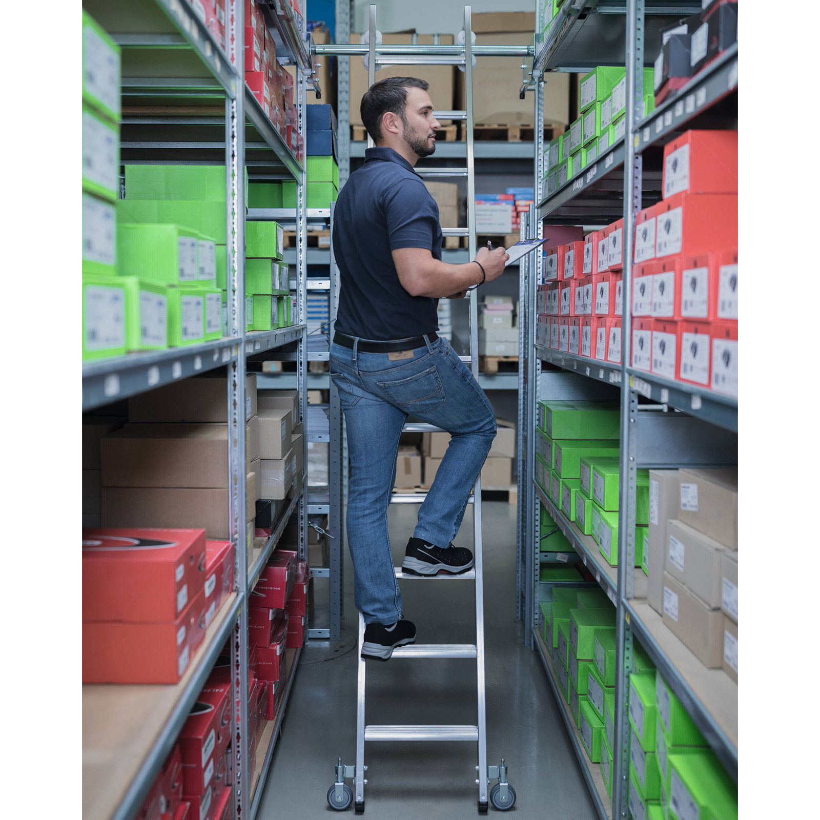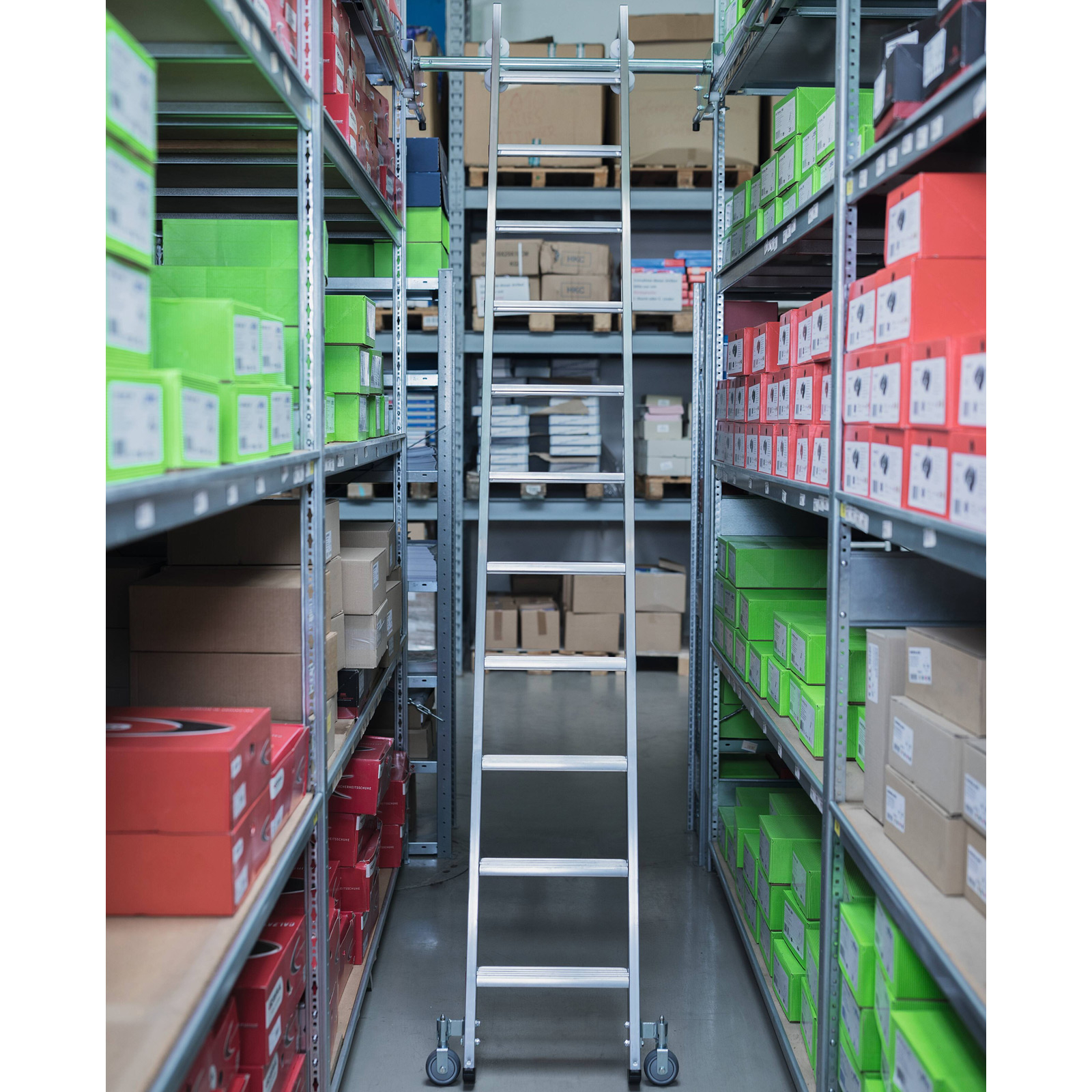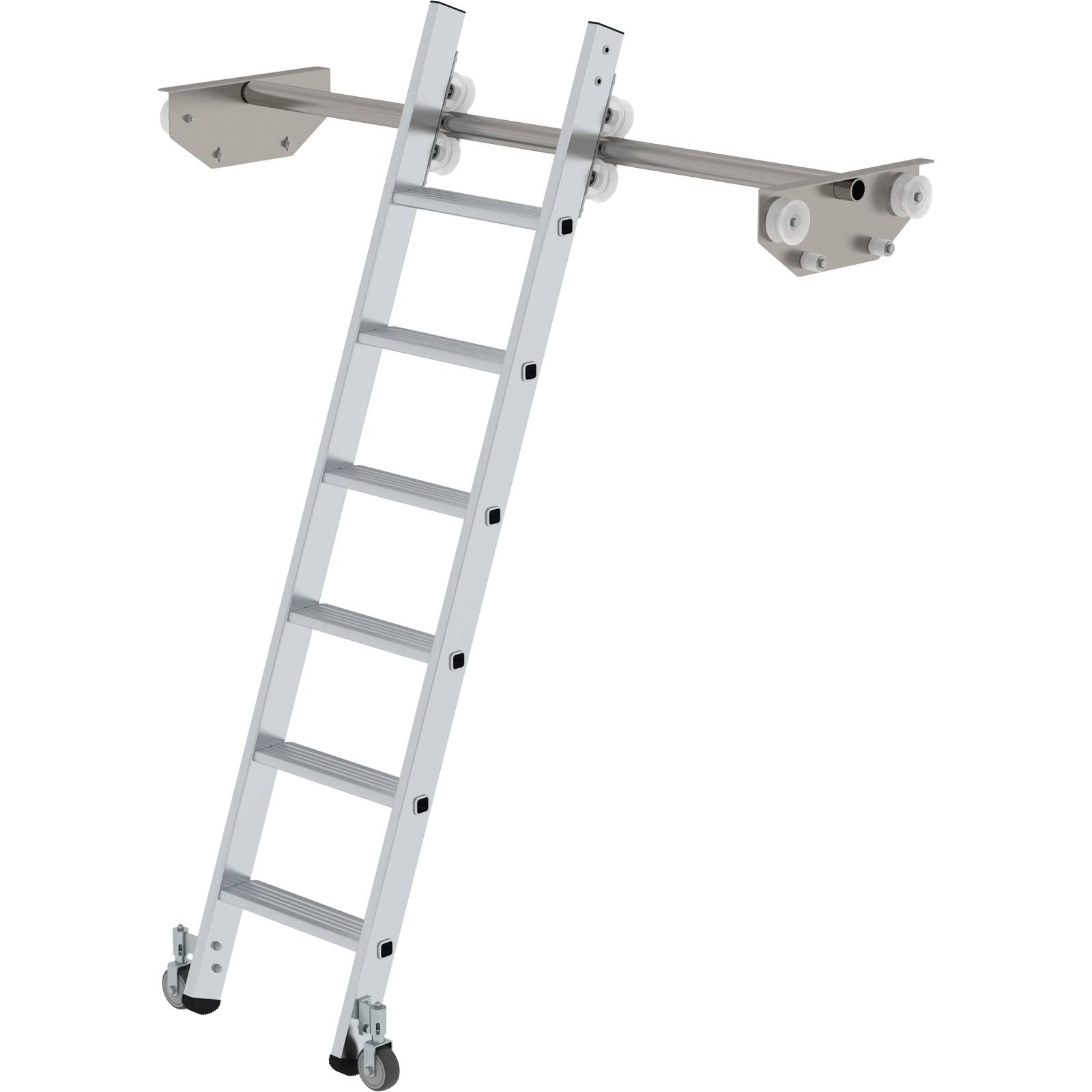 - Laufruhiges Kopffahrwerk für ein leichtes Verschieben der Leiter
