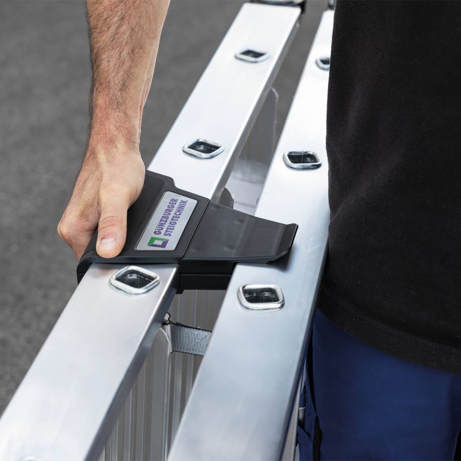 - 4-fach verschraubtes, massives Leitergelenk aus Aluminium