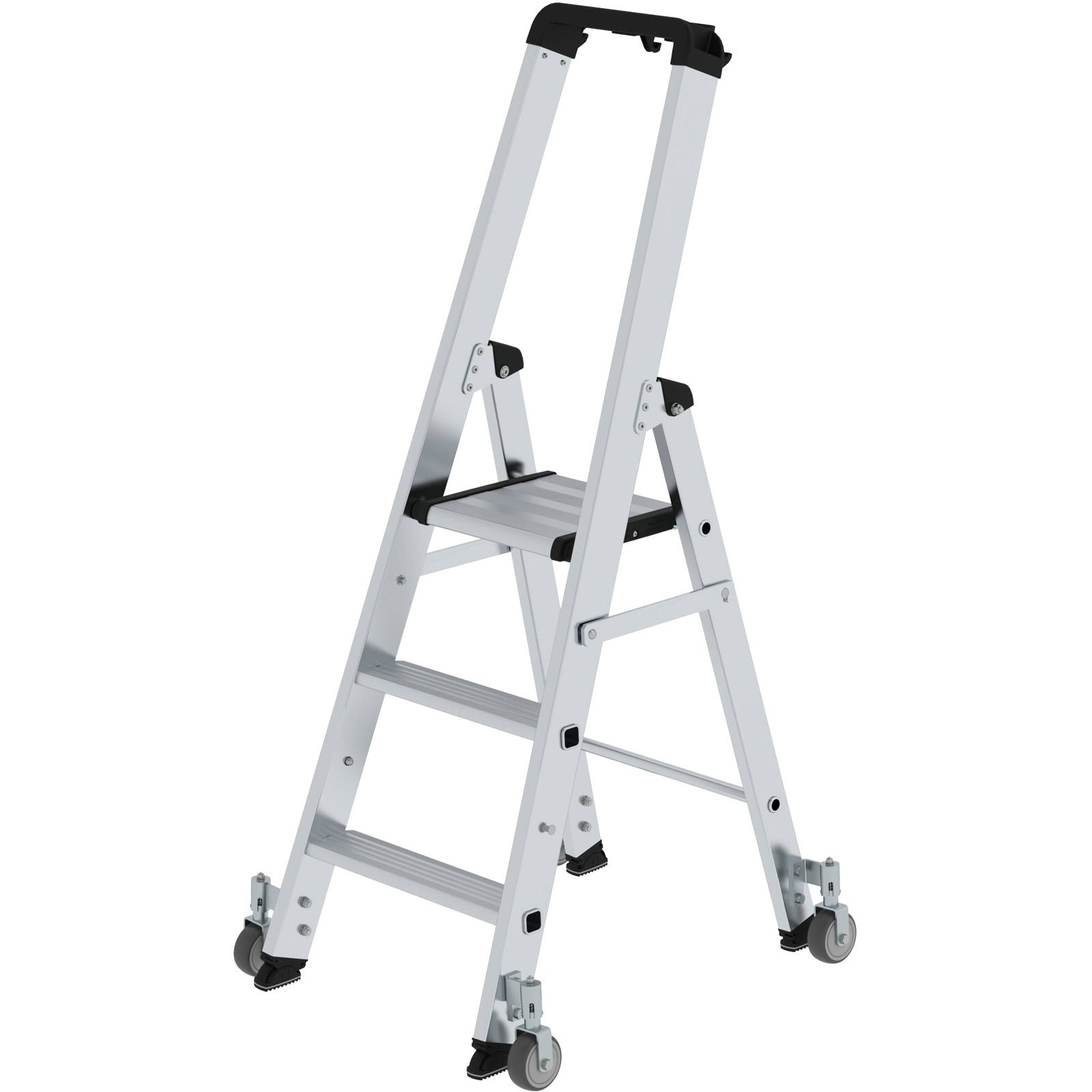 1x Günzburger Steigtechnik Stufen-Stehleiter einseitig begehbar mit Rollen 3 Stufen