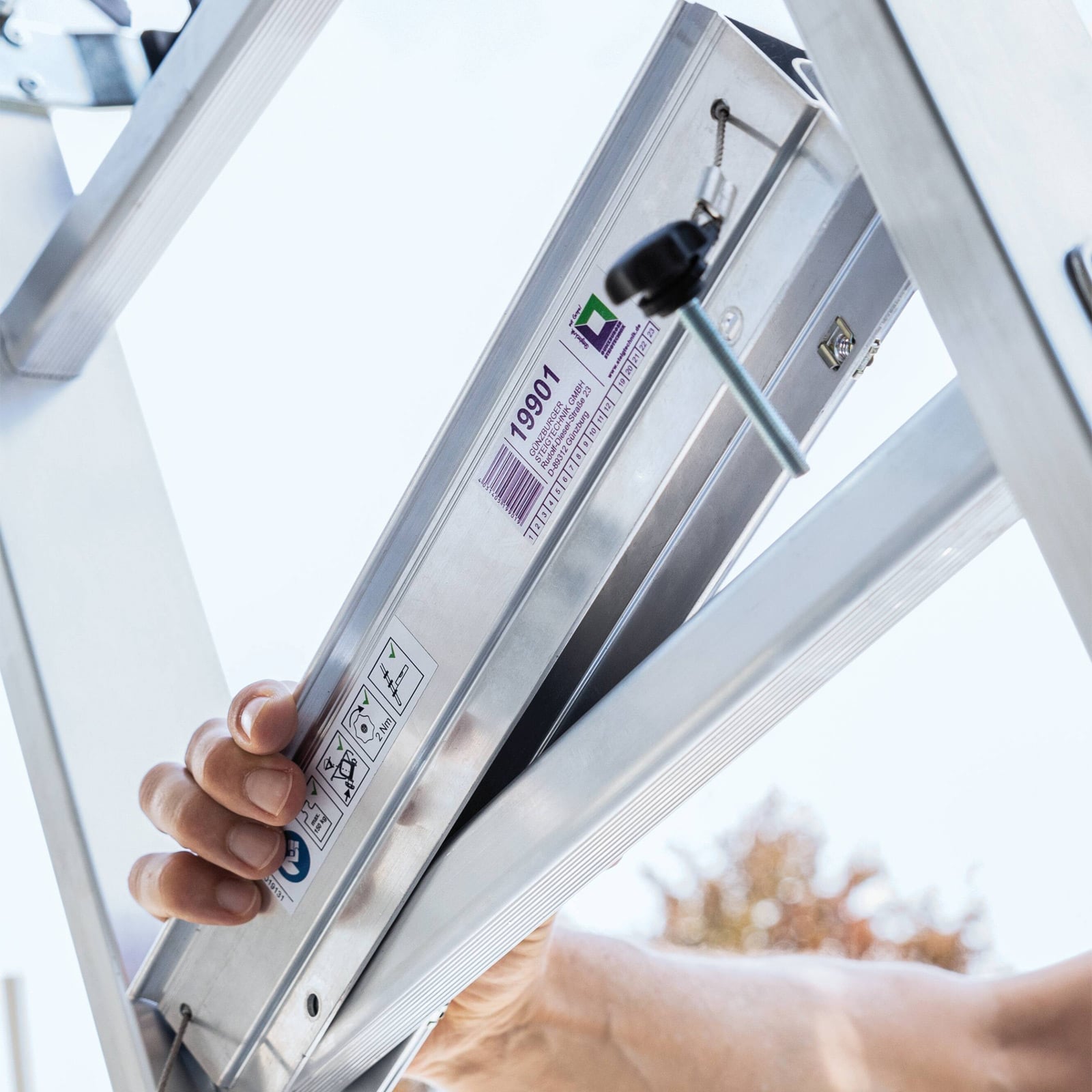 - Flexibel auf jeder Sprosse anzubringen bis zur maximal begehbaren Sprosse (nicht bei SprossenSafe R13)