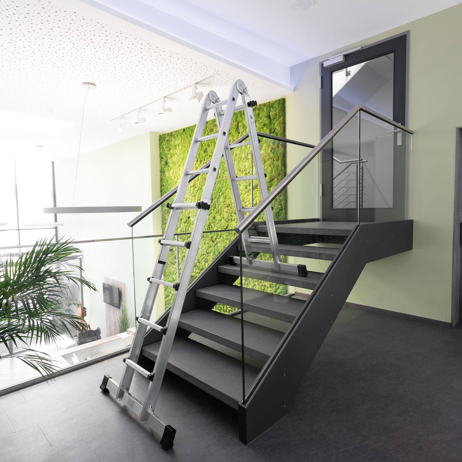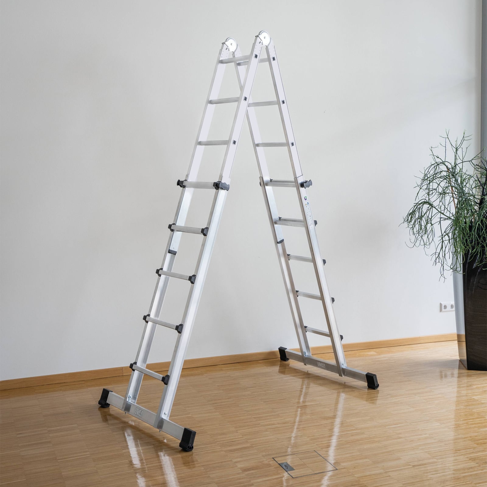- Einsetzbar als Steh- und Anlegeleiter
