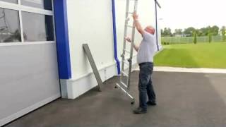 - 1x Günzburger Steigtechnik Vielzweckleiter 4tlg. mit nivello-Traverse und Holzbelag 2 x 3 + 2 x 4 Sprossen