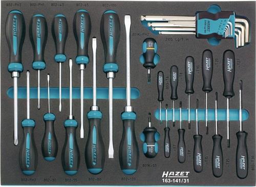 - je 1 x Doppel-Ringschlüssel SW 6 / 7 / 8 / 9 / 10 / 11 / 12 / 13 / 14 / 15 / 16 / 17 / 18 / 19 / 21 / 22 mm Schraubendrehersatz 163-141/31 31-teilig
