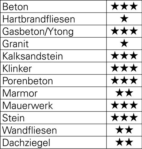 - hohe Bruchfestigkeit durch spezielle Härte-Strahl-Technik Anwendungsbereiche: Beton, Mauerwerk, Kalksandstein, Stein