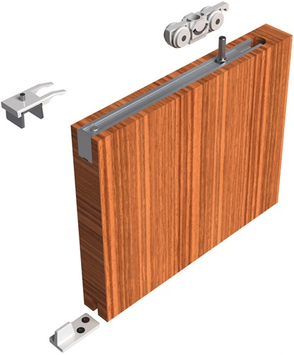 - Komplettgarnitur für einflügelige Holzschiebetüren mit minimaler Einbauhöhe bis 140 kg Flügelgewicht und Türstärken ab 35 mm
