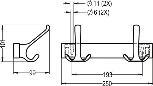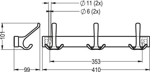 - 1x hermeta Huthakenleiste 0822-0823 96 mm LM silberfarbig eloxiert 102 mm