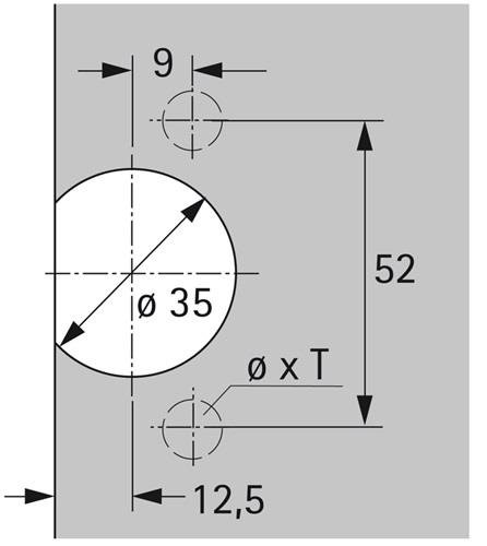 - 1x Hettich Topfscharnier Selekta Topf TX 32/52x9 z.Anschr
