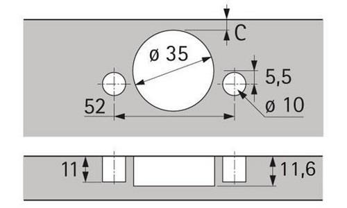 - 1x Hettich Weitwinkelscharnier Sensys 8657i TH 54 vern