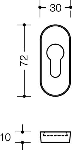 - Außenrosette, massiv, oval 72 x 30 mm , 10 mm stark gehärtet, in konischer Ausführung