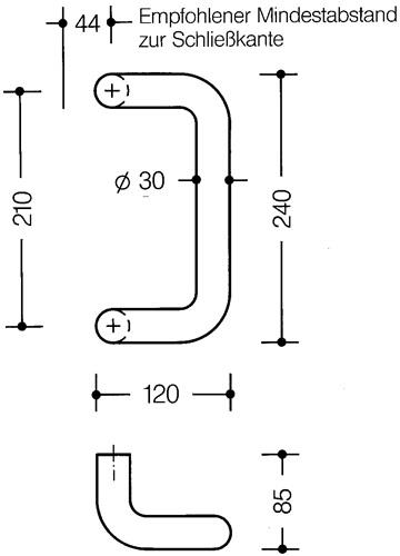 "HEWI Stoßgriff 550.30GKLT PA ma Farb-Nr.90 A.210mm L.240mm B.120mm - 550.30BGKLT 90"