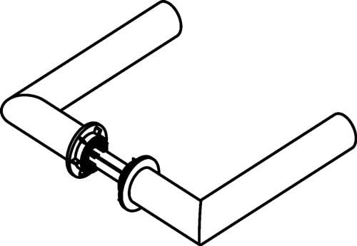 - mit flacher Drückerrosette aus Polyamid, Durchmesser 32 mm, bestehend aus: Türdrücker Modell 162.21PCM in Gehrungsform aus Polyamid mit durchgehendem Stahlkern bis in das Drückerende, durchgängig eingefärbt, bzw. Modell 162.21XAM aus Edelstahlrundrohr im Gehrungsschnitt (1.4301) mit 1,5mm Wandstärke