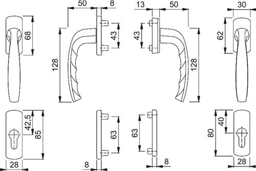 - 1x HOPPE Balkongarnitur NY 0810/961N/U10/… Alu.F9016 63-73mm 4-KT.7mm