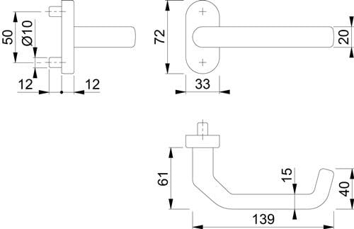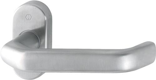 - HOPPE-Edelstahl-Feuerschutz-Rosetten-Türgriff-Halbgarnitur ohne Schlüsselrosette für Profiltüren: geprüft nach DIN 18273 Lagerung: gekröpfter Türgriff fest/drehbar
