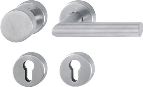 - Lagerung: Türgriffe fest/drehbar (Wechselgarnitur: außen Knopf fest), Rückholfedern, HOPPE-Steckgriff-Verbindung mit Kugel-Arretierung Sertos® , wartungsfreie Gleitlager