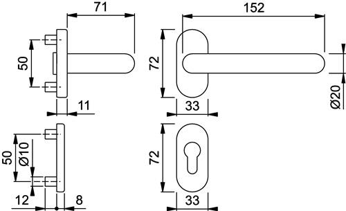 - mit HOPPE-Profilvollstift-Verbindung 9 mm (mit Klemmfeder zum Toleranzausgleich in der Schlossnuss)