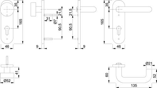 - DIN links / rechts verwendbar Wechselgarnitur: mit feststehendem Knopf K58