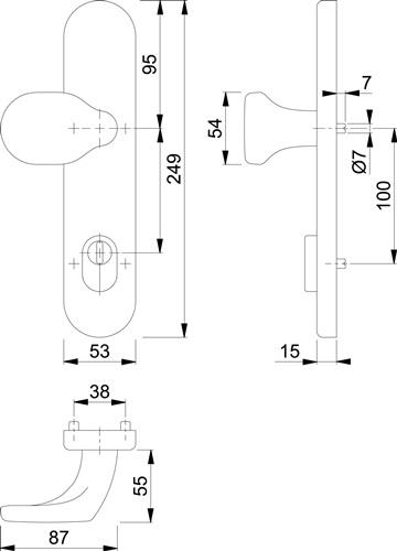 - 1x HOPPE Knopflangschild E86G/3332ZA VA F69 f.Kombischutz PZ 10mm