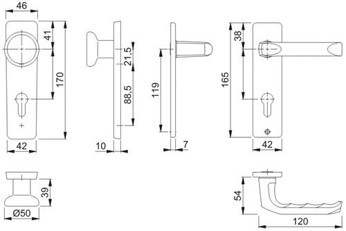 "HOPPE Kurzschildgarnitur London 54/227K/202KP/AP/113 Alu.F1 PZ eck.Wechselgrt - 6270052"