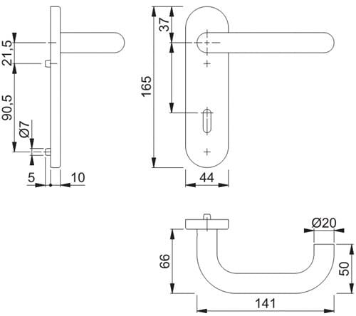 - Lagerung: Türgriffe fest/drehbar (Wechselgarnitur: außen Knopf fest), Rückholfedern, HOPPE-Steckgriff-Verbindung mit Kugel-Arretierung Sertos® , wartungsfreie Gleitlager