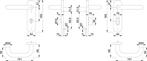 - Lagerung: Türgriffe fest/drehbar (Wechselgarnitur: außen Knopf fest), Rückholfedern, HOPPE-Steckgriff-Verbindung mit Kugel-Arretierung Sertos® , wartungsfreie Gleitlager