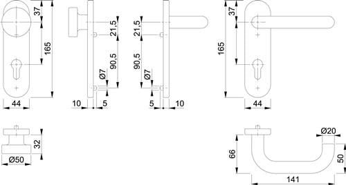 - Lagerung: Türgriffe fest/drehbar (Wechselgarnitur: außen Knopf fest), Rückholfedern, HOPPE-Steckgriff-Verbindung mit Kugel-Arretierung Sertos® , wartungsfreie Gleitlager