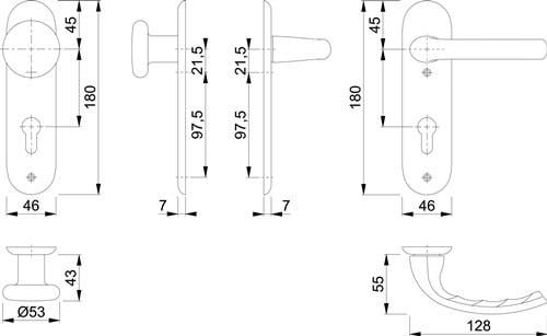 - Innentür-Kurzschild-Garnitur: geprüft nach DIN EN 1906 (Gebrauchs-Kategorie Klasse 3)