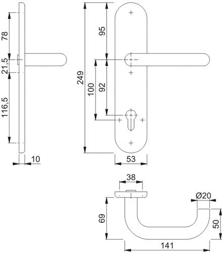 - Besonderheit: kombinierbar mit runden oder quadratischen HOPPE-Schutzrosetten an der Türaußenseite