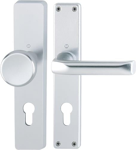- 1x HOPPE Langschildgarnitur London 54/227/202SP/113 Alu. F1 PZ 72mm DIN L/R