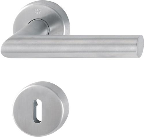 - Lagerung: Türgriffe fest/drehbar (Wechselgarnitur: außen Knopf fest), Rückholfedern, HOPPE-Steckgriff-Verbindung mit Kugel-Arretierung Sertos® , wartungsfreie Gleitlager