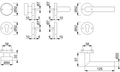 - Unterkonstruktion: Griff-/Knopfrosetten Stahl, Schlüsselrosetten Kunststoff, Stütznocken