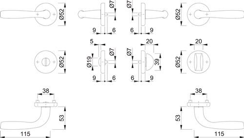 - Türgriffe fest/drehbar, Rückholfedern, wartungsfreie Gleitlager