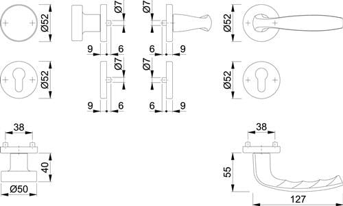 - Türgriffe mit Schnellstift-Verbindung (mit 8 mm Vollstift) für Türstärke 37-42 mm