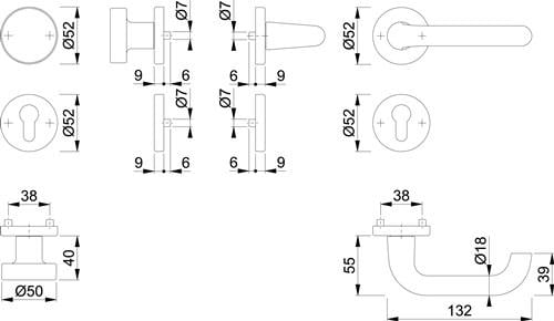 - Türgriffe mit Schnellstift-Verbindung (mit 8 mm Vollstift) für Türstärke 37-42 mm
