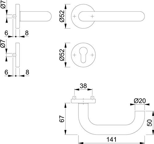 - Türgriffe mit Schnellstift-Verbindung (mit 8 mm Vollstift) für Türstärke 37-42 mm