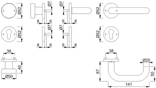 - Türgriffe mit Schnellstift-Verbindung (mit 8 mm Vollstift) für Türstärke 37-42 mm