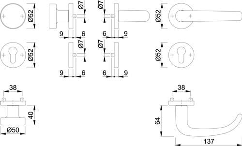 - Türgriffe mit Schnellstift-Verbindung (mit 8 mm Vollstift) für Türstärke 37 42 mm